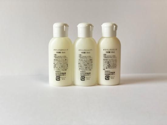 良質なオリーブと生体エネルギーから生れたボディソープ、シャンプー、リンスがセットに。